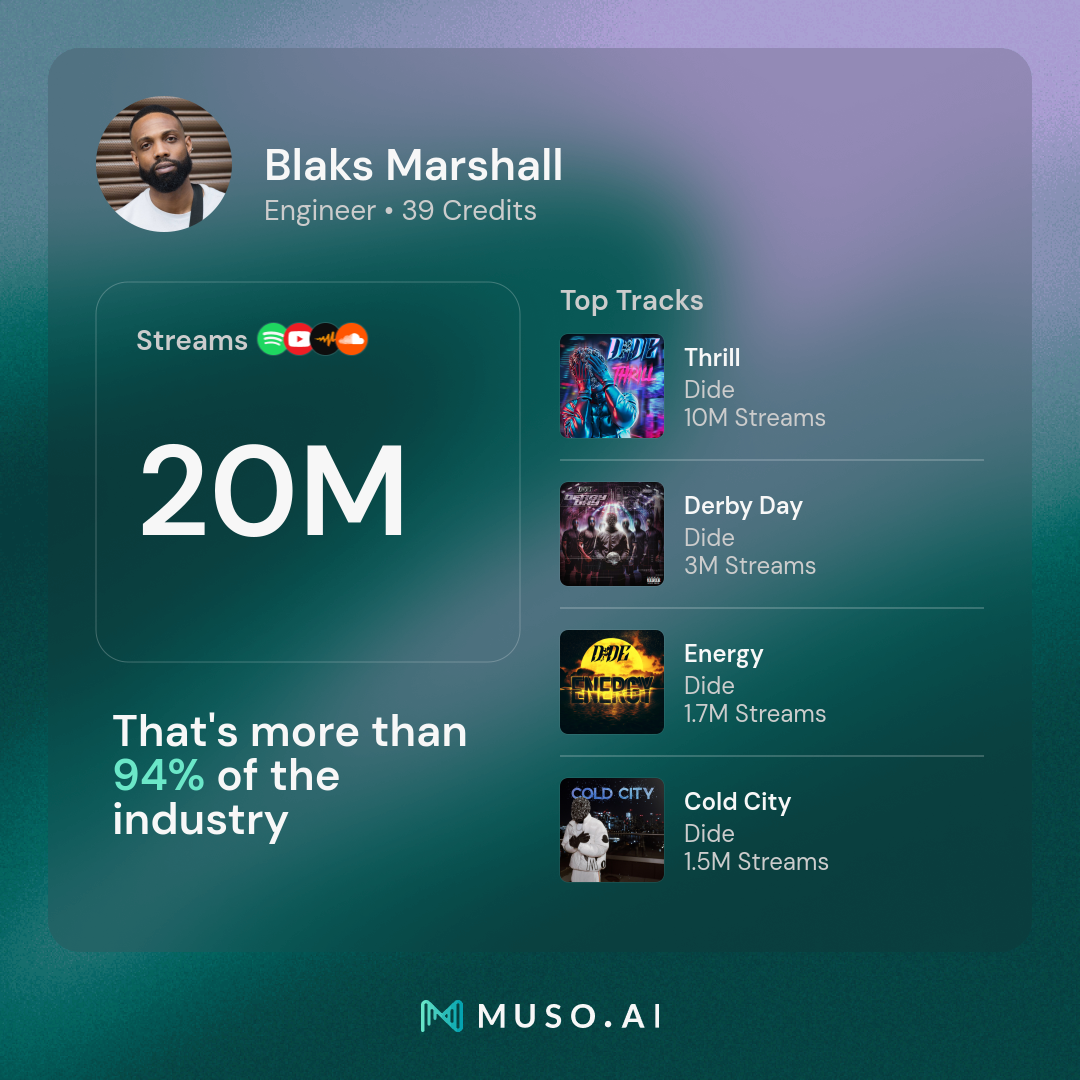 Our robust network of talented singers, songwriters, and producers has attracted an esteemed client roster that includes six-time platinum recording artist Hardy Caprio, Grammy and MOBO award-winner Fuse ODG, the queen of Drill Ivorian Doll, and Premier League mystery footballer Dide.
